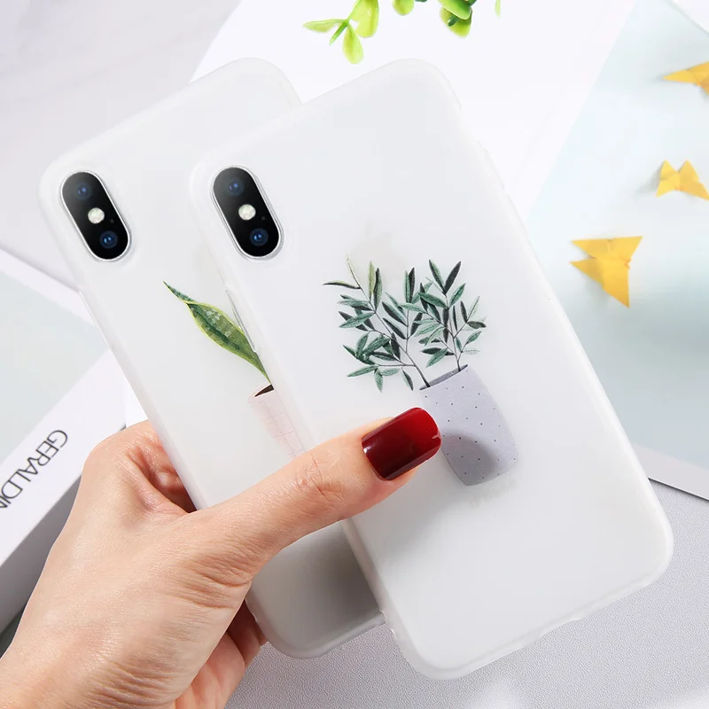 Finest KJOEW Green Potted Plant Leaf Phone Case For iPhone X XS Max XR TPU Silicone Case For iPhone 6 7 6S